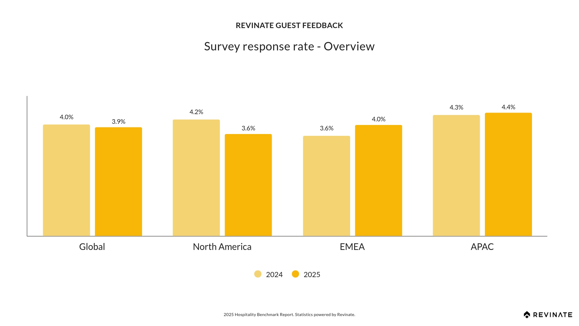 Surveys are a direct line of communication with your guests, providing insights that can shape and elevate the guest journey. These insights not only help you drive operational improvements, but also foster loyalty, satisfaction, and long-term success. We’ll examine benchmarks for survey response rates and Net Promoter Scores to understand how hoteliers are engaging their guests and meeting expectations.