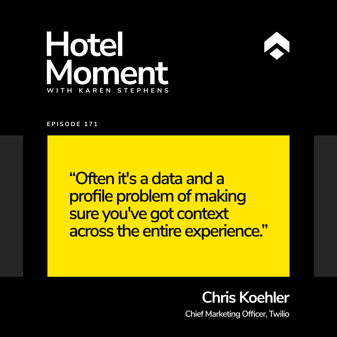 In this episode of Hotel Moment, Revinate CMO Karen Stephens sits down with Chris Koehler, CMO at Twilio, to dig into why data acquisition — not data collection — is the real barrier to better guest experiences. They explore the growing gap between how brands think they engage with customers and how guests actually experience it — And how to close that gap with clean, connected guest profiles that give teams the context they need across every touchpoint.