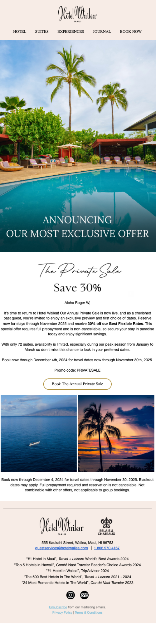 Hotel Wailea’s BFCM early access sale rewards loyalty and drives repeat bookings